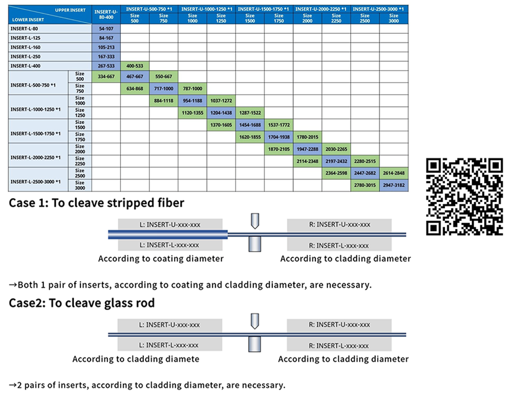 Inserts are selected according to fiber coating diameter and cladding diameter.