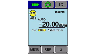 Measures communication wavelengths of 1310, 1490, and 1550 nm, along with fiber reference signals at 270 Hz, 1 kHz, and 2 kHz.