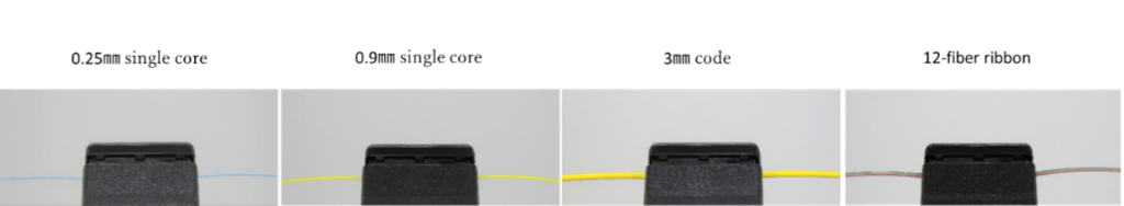 The bending tip accommodates fibers from 0.25 mm single fiber to 3 mm cord, as well as up to 12-fiber ribbon.