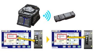 Automatic adjustment of RS02/03 heating conditions based on fiber type via wireless communication when splice mode changes.