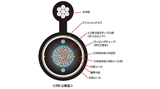 架空配線用に支持線を一体化させたケーブルとなり自立して設置が可能になり