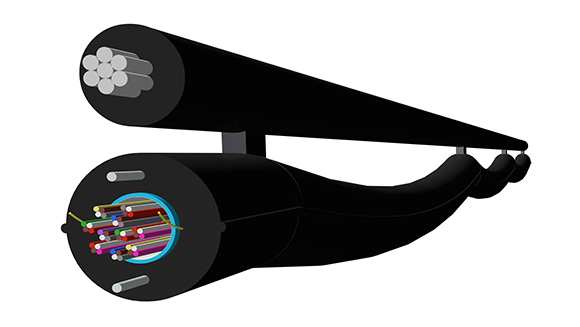 架空配線用に支持線を一体化させたケーブルとなり自立して設置が可能になります。