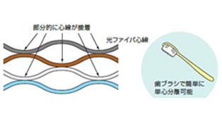 間欠固定テープ心線は専用工具を用いることなく単心分離が可能です。