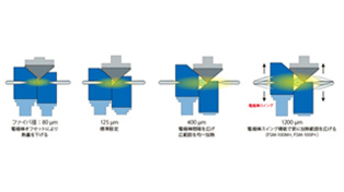分割V溝機構と電極棒可動機構により、光ファイバ径に応じた放電コントロールが可能です。
