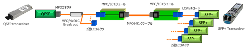 | MPO/LC Breakoutコード | 1種類(QSFPトランシーバとSFP+トランシーバの接続に使用するFOタイプの配線) | |||