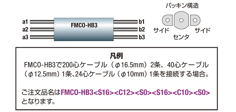 - パッキン構造がセンタとサイドで異なります。ご注文の際には、ケーブル導入位置をお間違えのないようにお願いします。