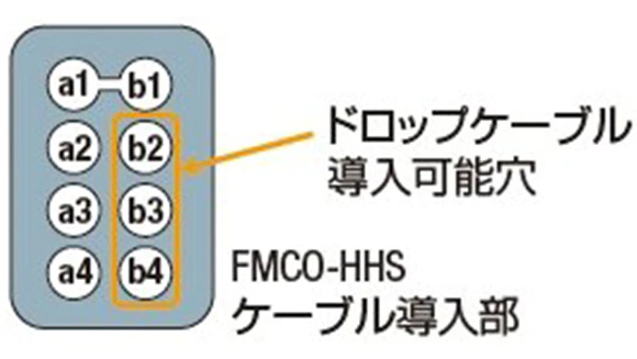 - ドロップケーブルの導入が必要な場合、本体は FMCO-HHS/BL5/DW またはFMCO-HHS/OA/BL5/DW をご注文ください。