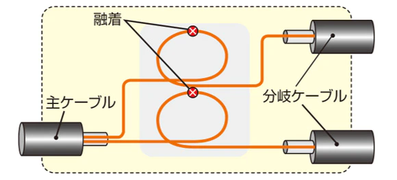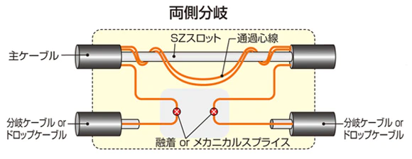 - スロット無切断型中間後分岐接続(両側分岐)