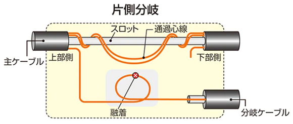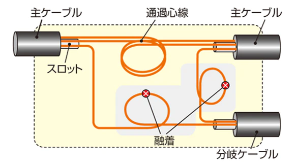- スロット無切断型中間後分岐接続(片側分岐)