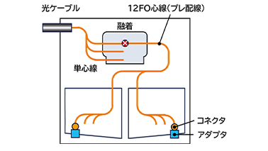 データセンタ内における光ファイバケーブル成端を伴う高密度光配線が可能で、12心テープ心線、12心SWR®の光ファイバケーブルに対応します。