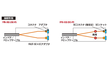 FO心線内蔵型(-PR)および現場組立光コネクタ(FAST-SC)添付型(-FS)があります。