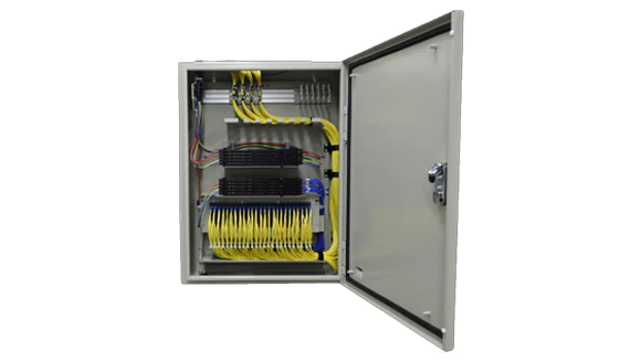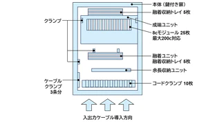 光成端ユニットは最大200心まで収容可能。多心数の光ファイバ接続に対応し、大規模ネットワークにも適応します。