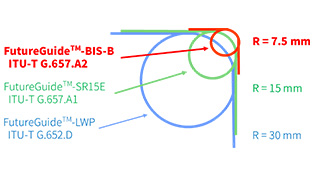 特別な構造を採用することで、FutureGuide®-SR15Eを上回る優れた曲げ特性を実現しました。これにより、狭小スペースでの施工や高密度配線における省スペース化が可能となります。さらに、FutureGuide®-LWP(G.652.D)との互換性を備えており、幅広いネットワーク構築に対応します。