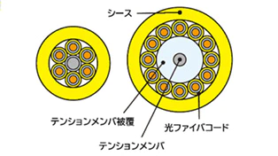 光ファイバコードの外周に光ファイバケーブルのシースがかかっている構造のため、架間、フロア間の光接続に適しています。