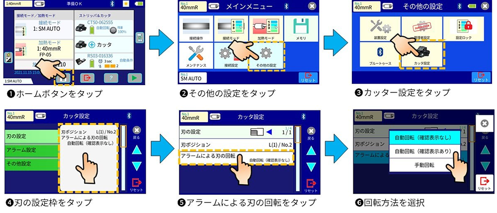 切断刃の回転方法(自動/手動)の設定