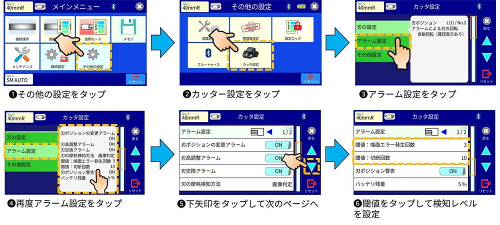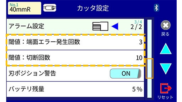 CT50 切断刃の摩耗検知機能の詳細設定
