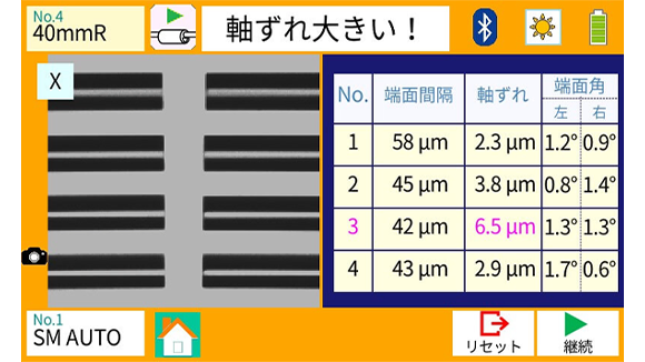 光ファイバを光ファイバ融着接続機にセットし、接続前検査に於いて