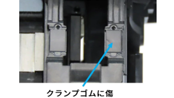 クランプゴムに傷や欠けが入っていると、クランプゴムで光ファイバを適切に把持できません。