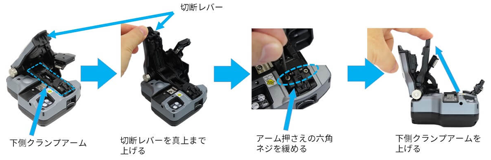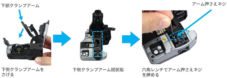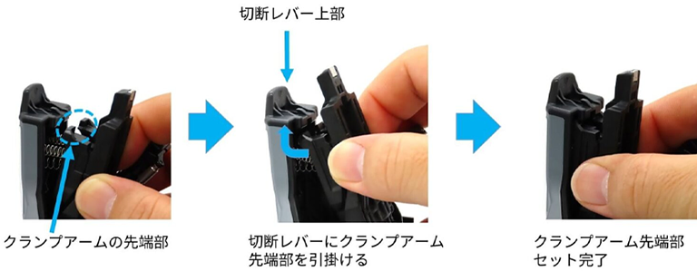 9. クランプアームの先端部を切断レバー上部に引っ掛けます。