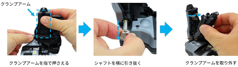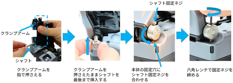 ※クランプアームを押さえないとバネの力でクランプアームが飛び出します。