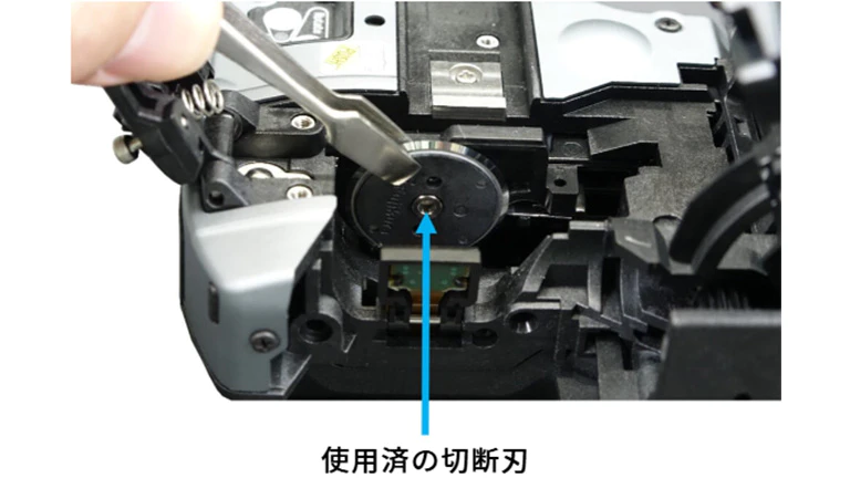 8. ピンセットを使い使用済の切断刃を取り外してください。