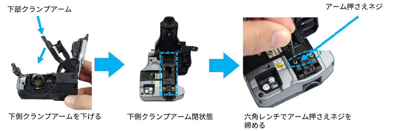 ※切断刃交換作業で、下側クランプアームを上げる際にひっかかるため。