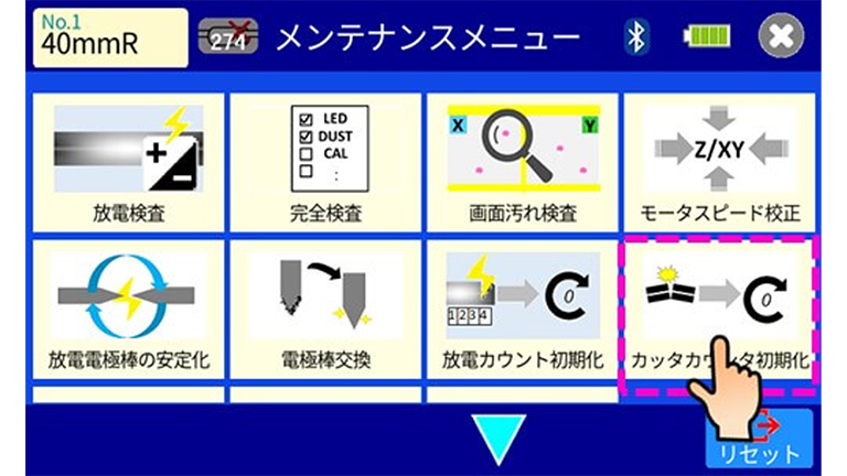 14. 光ファイバ融着接続機のメンテナンスメニュー内にあるカッタカウンタ初期化を実行して切断刃交換終了です。