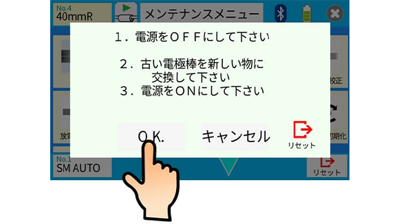 - 1.モニターに電極棒交換して下さいと表示されたとき