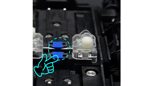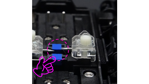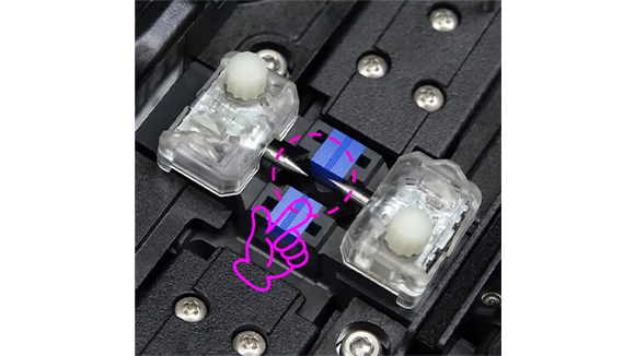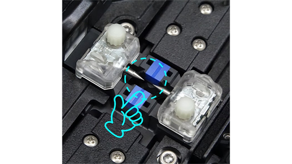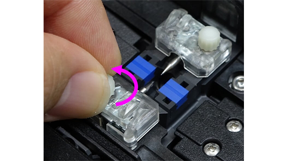 4. 風防を手で開きます。そして電極棒固定ネジを指で緩めます。光ファイバ融着接続機から両方の電極棒を取り外します。