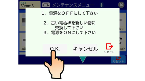 1.モニターに電極棒交換して下さいと表示されたとき