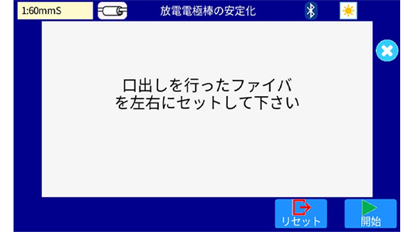 7. 光ファイバ融着接続機の電源をONにすると放電電極棒の安定化メニューがモニタへ表示されます。