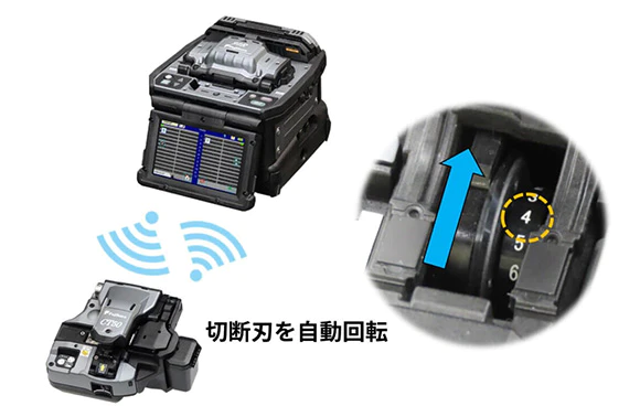 - 切断刃の摩耗状態を光ファイバ融着接続機が検知し、切断刃を自動回転。