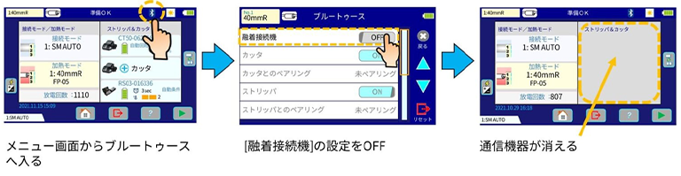 1. 光ファイバ融着接続機側で無線通信を止める方法