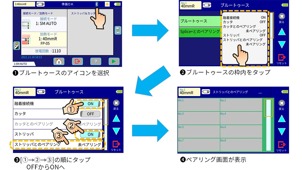 光ファイバ融着接続機と多心光ファイバストリッパのペアリング方法