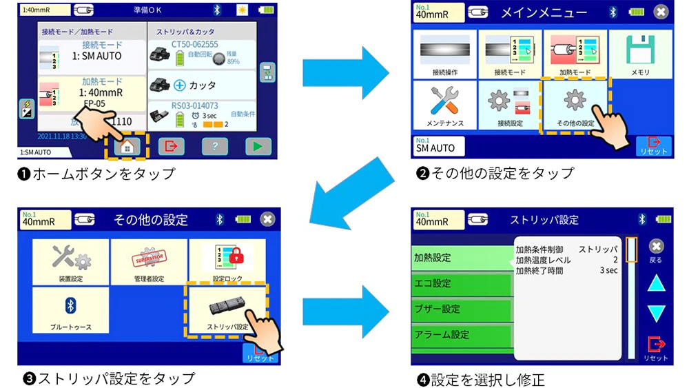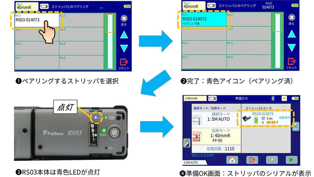 光ファイバ融着接続機と多心光ファイバストリッパ RS03の無線通信設定