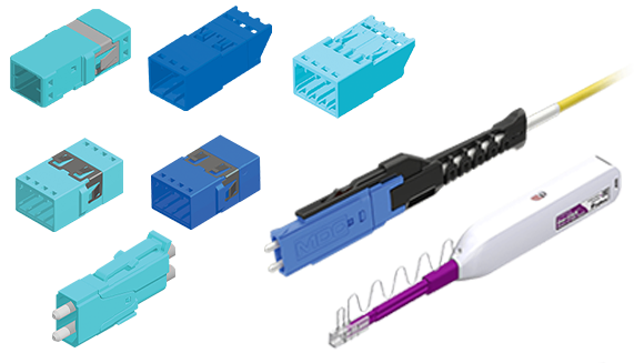 - Supports four individual MDC cables in a QSFP footprint and two individual MDC cables in an SFP footprint.