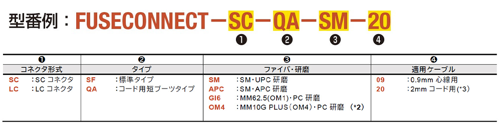 LFCタイプはインドアケーブル、DCタイプはドロップケーブル専用のタイプとなります。