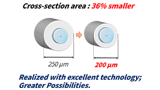 Reduced coating diameter down to 200µm with maintaining equivalent performance as 250µm fibers.