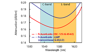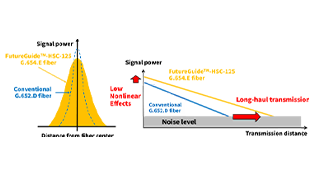 FutureGuide™-HSC-125, fully compliant with ITU-T G.654.E, combines ultra-low attenuation with an optimized large effective area. This advanced design delivers multiple benefits for long-haul terrestrial networks, including higher transmission capacity, greater flexibility in network system design, and cost-effective implementation.