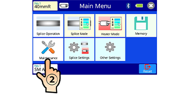 2. Press the [Menu] Icon in [Ready] state on the monitor. Then press the maintenance Icon on the main menu. And then press the Replace Electrode icon on Maintenance Menu.