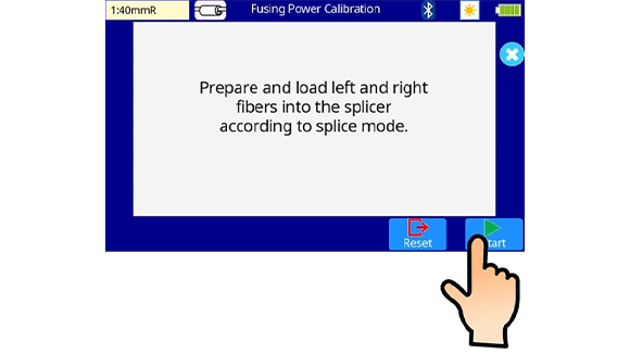 8. Perform Fusing Power Calibration. Set the right and left fibers that cleaved into the splicer. Press the start icon on the monitor.