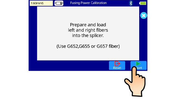 9. Perform Fusing Power Calibration. Set the right and left fibers that cleaved into the splicer. Press the start icon on the monitor.